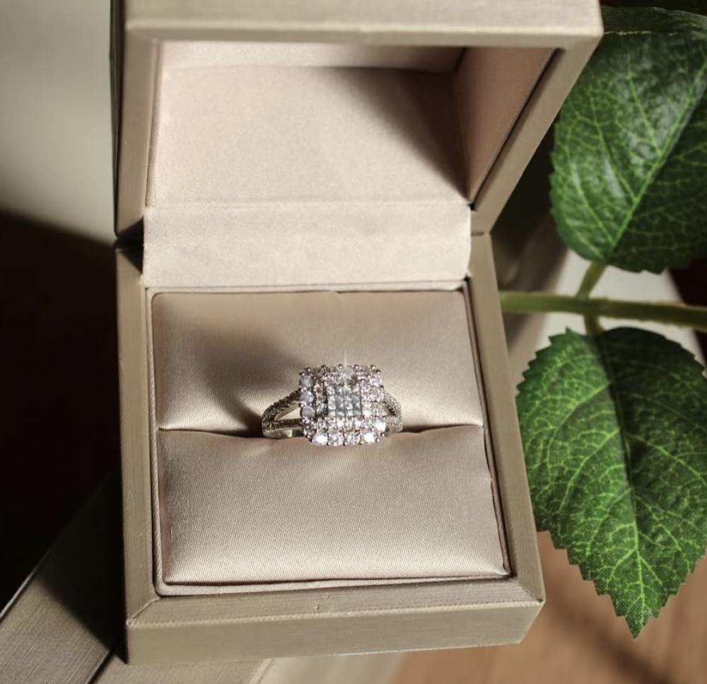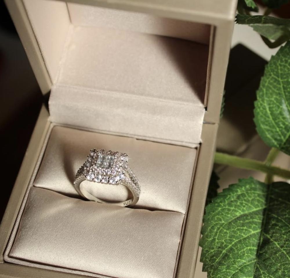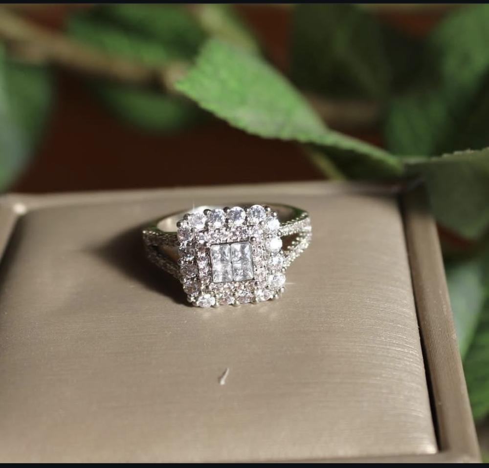 · خاتم فضة مطلي ذهب عيار ١٨ و مرصع بأحجار الألماس الصناعي السويسري الفاخر "زركون".